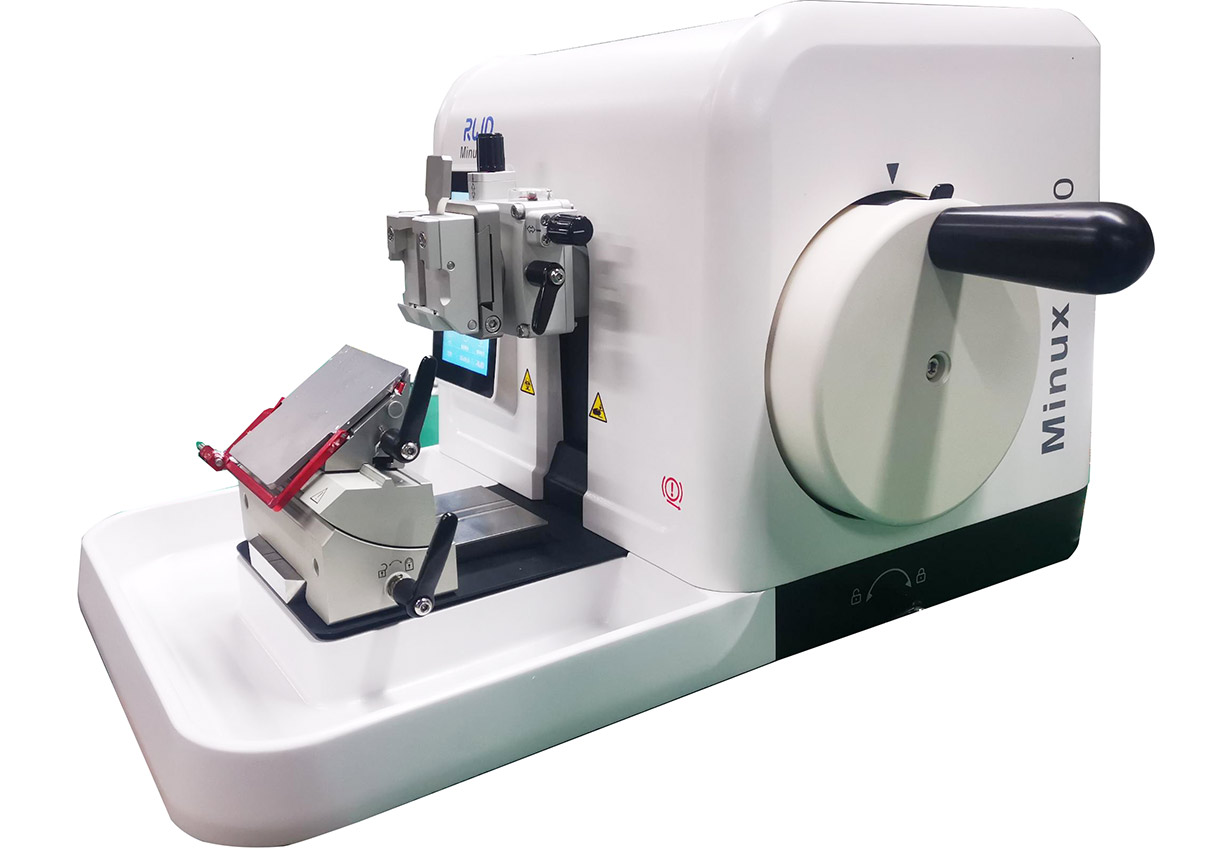 1.顶级十字交叉导轨和精密丝杆,搭配五相高分辨率进样电机和航空铝材质的水平进样滑块,组成高精准进样系统,保证切片质量。 2.稳定龙门架结构设计,高硬度合金转接,提升主机刚性,硬组织切片依然精准。